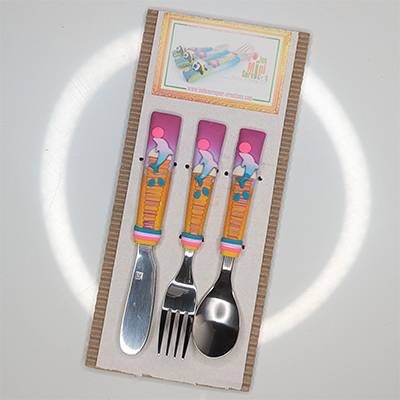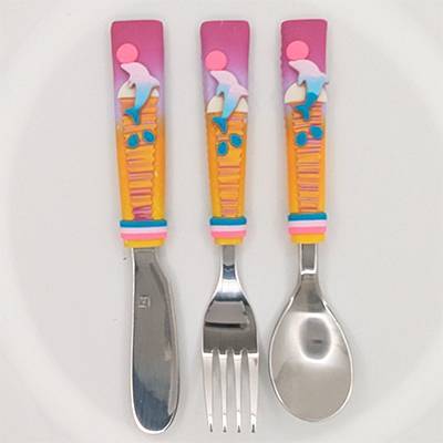 La base des couverts est de qualité inoxydable et polie, le manche est de création artisanale et décoré en pâte polymère.