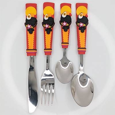 Ensemble de 4 couverts sur le thème des Oiseaux dont la taille, la forme et le poids sont adaptés aux mains et à la bouche des enfants.