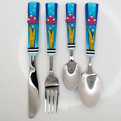 La base des couverts est de qualité inoxydable et polie, le manche est de création artisanale et décoré en pâte polymère.