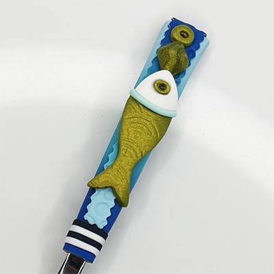 La base des couverts est de qualité inoxydable et polie, le manche est de création artisanale et décoré en pâte polymère.