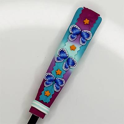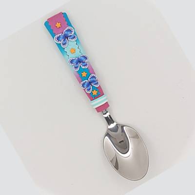 La cuillère est de qualité inoxydable, le manche est de création artisanale et décoré en pâte polymère.