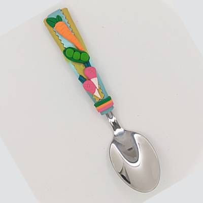 Jolie cuillère sur le thème des Légumes dont la taille, la forme et le poids sont adaptés à toutes les bouches.