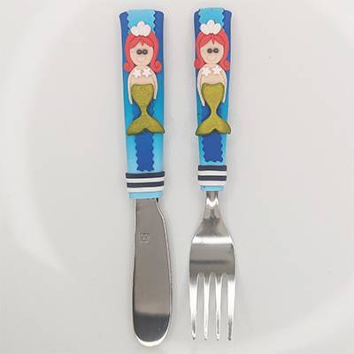 La base des couverts est de qualité inoxydable, le manche est de création artisanale et décoré en pâte polymère.