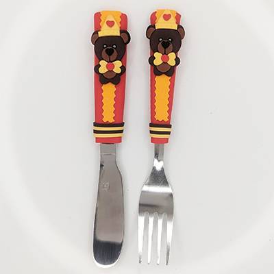 Ensemble de 2 couverts sur le thème des Ours dont la taille, la forme et le poids sont adaptés aux mains et à la bouche des plus petits.