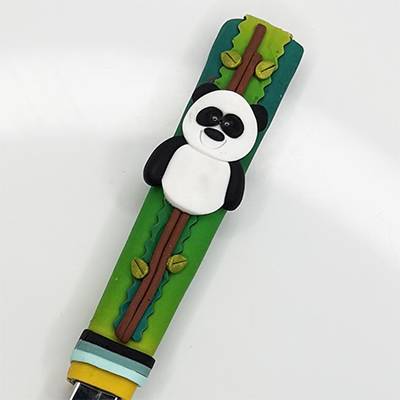 La base des couverts est de qualité inoxydable, le manche est de création artisanale et décoré en pâte polymère.