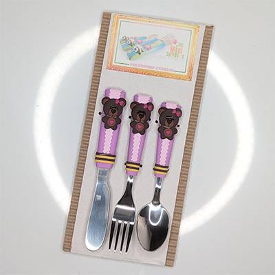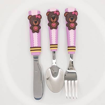 Ensemble de 3 couverts sur le thème des Ours bruns dont la taille, la forme et le poids sont adaptés aux mains et à la bouche des enfants.