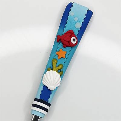La fourchette est de qualité inoxydable, le manche est de création artisanale et décoré en pâte polymère.