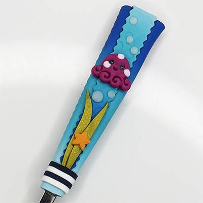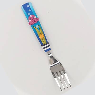 La fourchette est de qualité inoxydable, le manche est de création artisanale et décoré en pâte polymère.