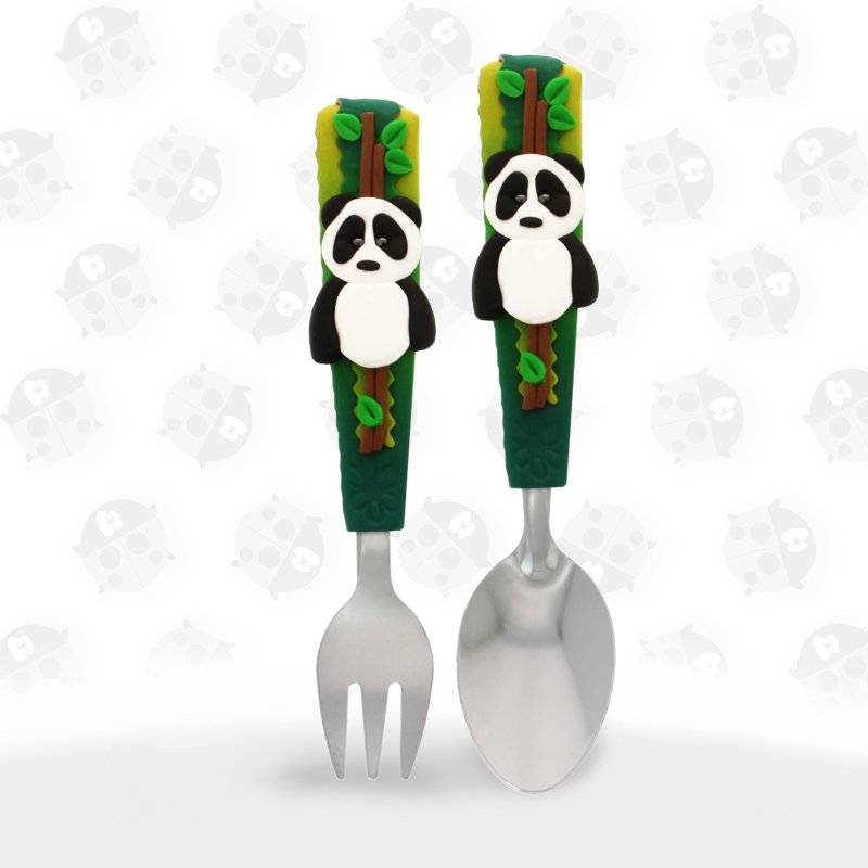 Ensemble de 2 couverts sur le thème des Pandas dont la taille, la forme et le poids sont adaptés aux mains et à la bouche des plus petits.