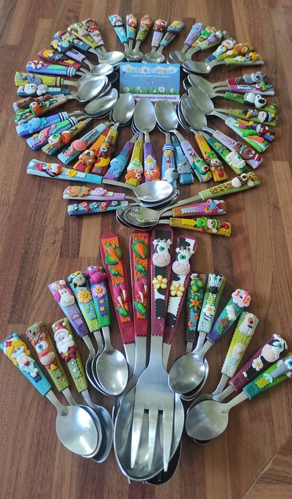 Inspirée par la tradition d'offrir des couverts symboliques, Belle à Croquer réinvente ce geste avec des matériaux modernes et une touche de créativité. La pâte polymère que nous utilisons est un matériau souple, coloré et sans phtalates, nous permettant de modeler et de personnaliser chaque pièce à l'infini. Au-delà des cuillères personnalisées, découvrez également nos sets de couverts pour enfants, nos boîtes à dents de lait fantaisie, nos coquetiers décoratifs et bien d'autres créations artisanales pour embellir votre quotidien et celui de vos proches.
